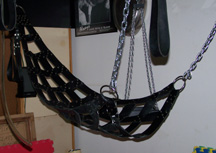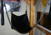 The entire space is divided into four sections: the playroom, a changing area, a social/sitting space and a "canteen". The basement playroom itself comprises a variety of home-designed/built and commercially purchased equipment including sling frames and slings, stocks, rimming chair, fuck/bondage table, fuck/fist bench, bondage frames and related equipment, toys, benches, stools, mirrors, mattresses and other items. There is also a complete wash-up area with two sinks and all the necessary paraphernalia. Between the playroom and the sitting area is a small home gym which is used as a changing space. Two complete washrooms are on the first floor and a complete washroom adjacent to the playroom.